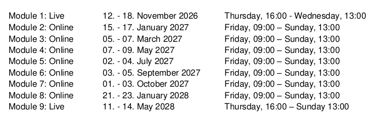 From May 2025 until November 2026, this English-language MBSR teacher training near Berlin offers a compact format of seven modules online and two modules live.